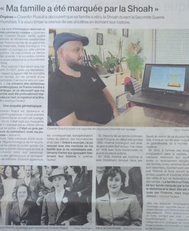 (dyslexie, dysorthographie…), Corentin a été accompagné tout au long du processus d’écriture par son orthophoniste. Son travail a également été porté et enrichi par Régine Immergout & Bérengère, cousines retrouvée à la suite de ses recherches généalogiques, dont l’implication a été déterminante dans la naissance de l’ouvrage.
